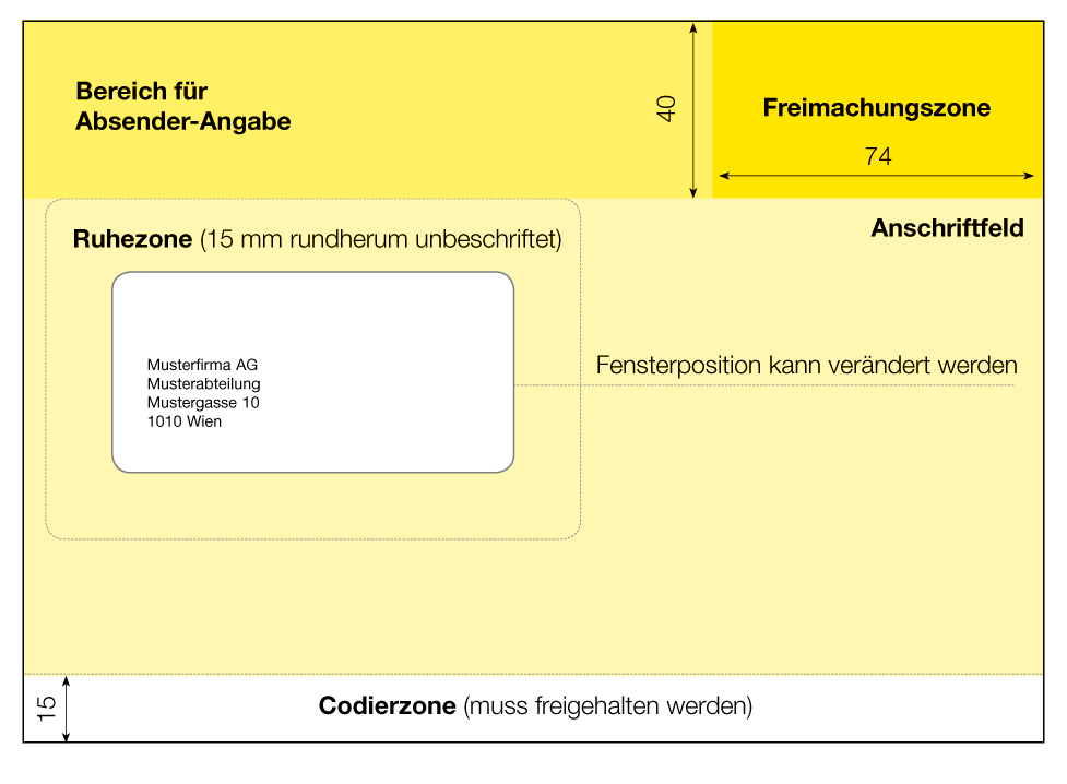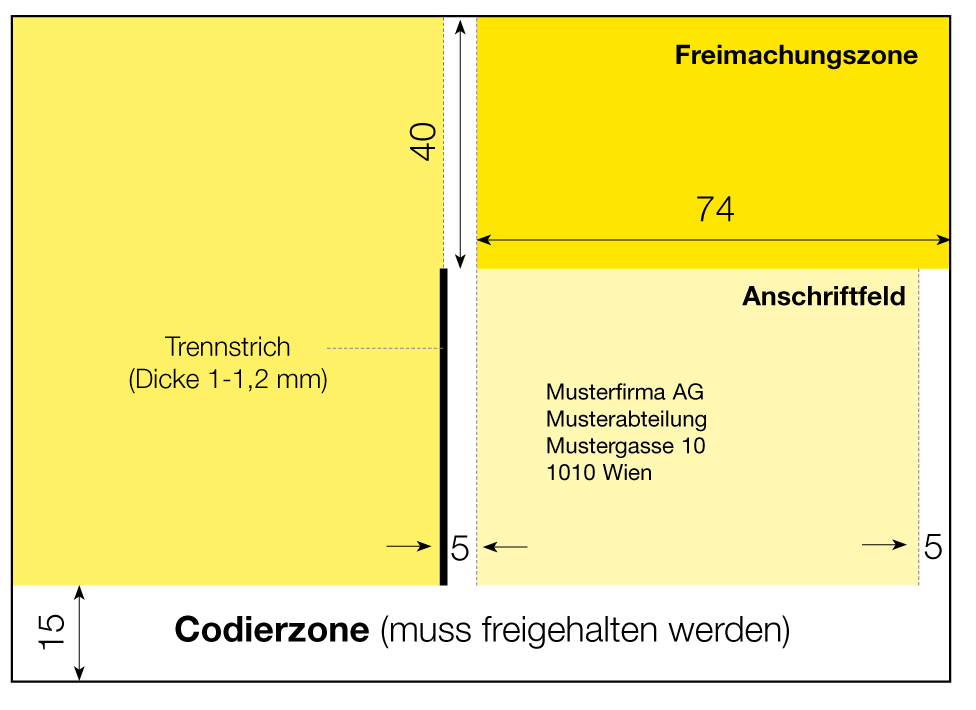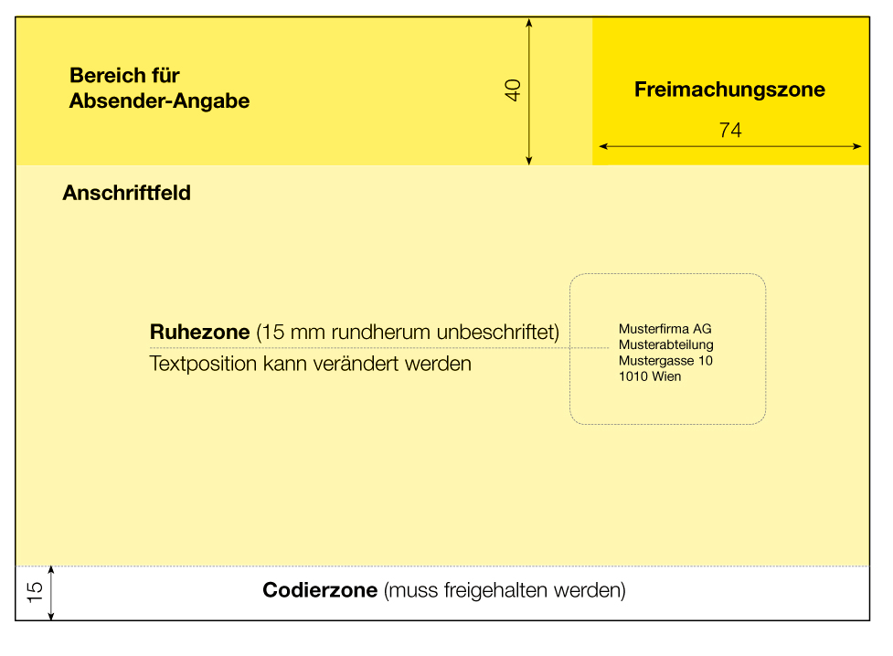 Darstellung von Absenderangabe, Freimachungs-, Lese- und Codierzone